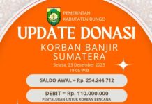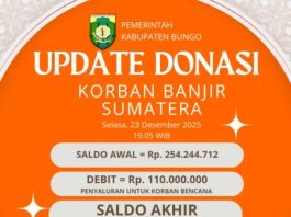 JAMBIBEDA.ID, Muara Bungo - Dana bantuan hasil donasi masyarakat Kabupaten Bungo untuk korban bencana banjir dan longsor di Sumatra pada Desember 2025 lalu, ternyata...