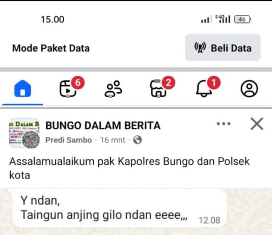 JAMBIBEDA.ID, Muara Bungo - Belum lama ini, jagat maya dihebohkan dengan postingan akun Facebook Predi Sambo di Grup BUNGO DALAM BERITA. Postingan tersebut memuat...