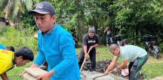 Bantu Pembangunan Rumah Warga, Brigpol Maidani Turun Tangan Aduk Semen